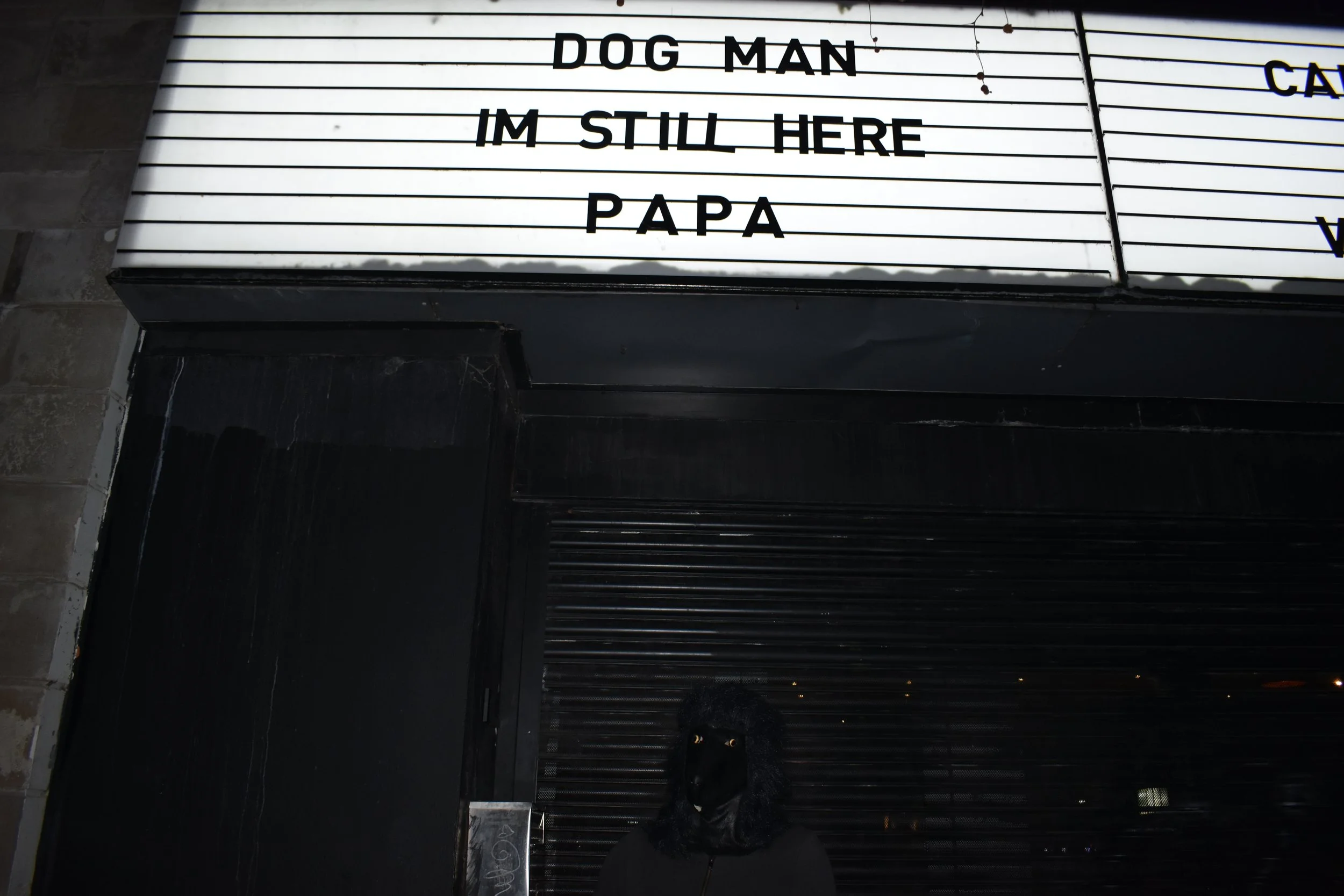Mr. Dog Face, he declares himself into the microphone. A half man, half dog. Or rather a man dressed in all black, with a plastic dog mask covering his face. We sit transfixed as he begins to perform poetry; words escaping only through a small circular mouth hole. The audience is completely silent until his last rhyme is squeezed out of motionless lips. The dog takes a bow.